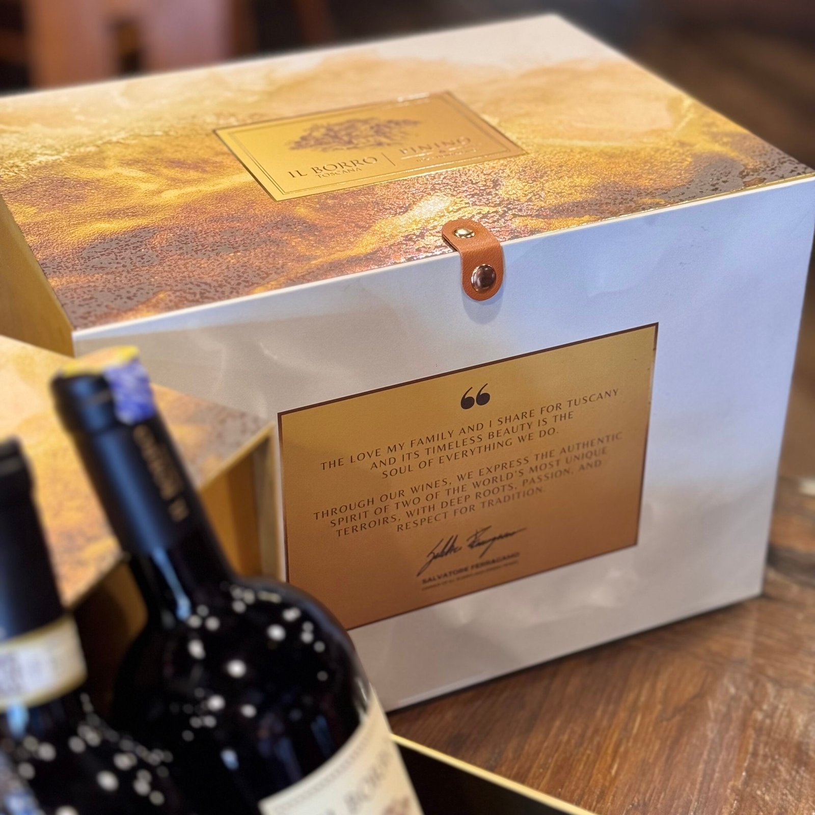 Curated from two iconic Tuscan wineries — Il Borro, owned by the legendary Ferragamo family, and Pinino, a hidden gem in the heart of Montalcino. Mr. Salvatore Ferragamo, heir to the iconic fashion empire, continues the family’s legacy of elegance and refinement through these world-class wines.